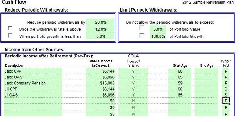 they do retirement income planning they’ll want this information to add to the your plan. To the right, I’ve circled Jack and Jill’s CPP estimate and shown where I put it in the Otar Retirement Calculator. Amounts shown are annual payments.